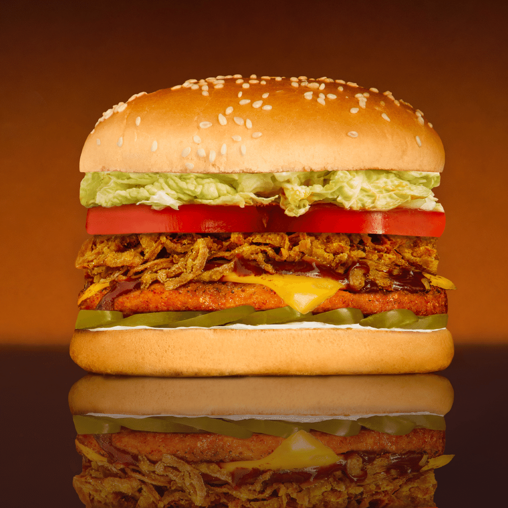 Обжаренная свежая булочка на гриле , перчик халапеньо, жаренный лук , пекинская капуста , томаты, сыр хохланд, куриная котлета.