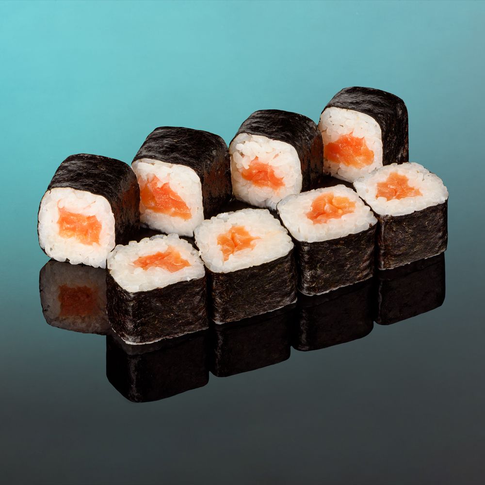 Лосось, рис и нори - ничего лишнего. Соевый соус приобретается отдельно
