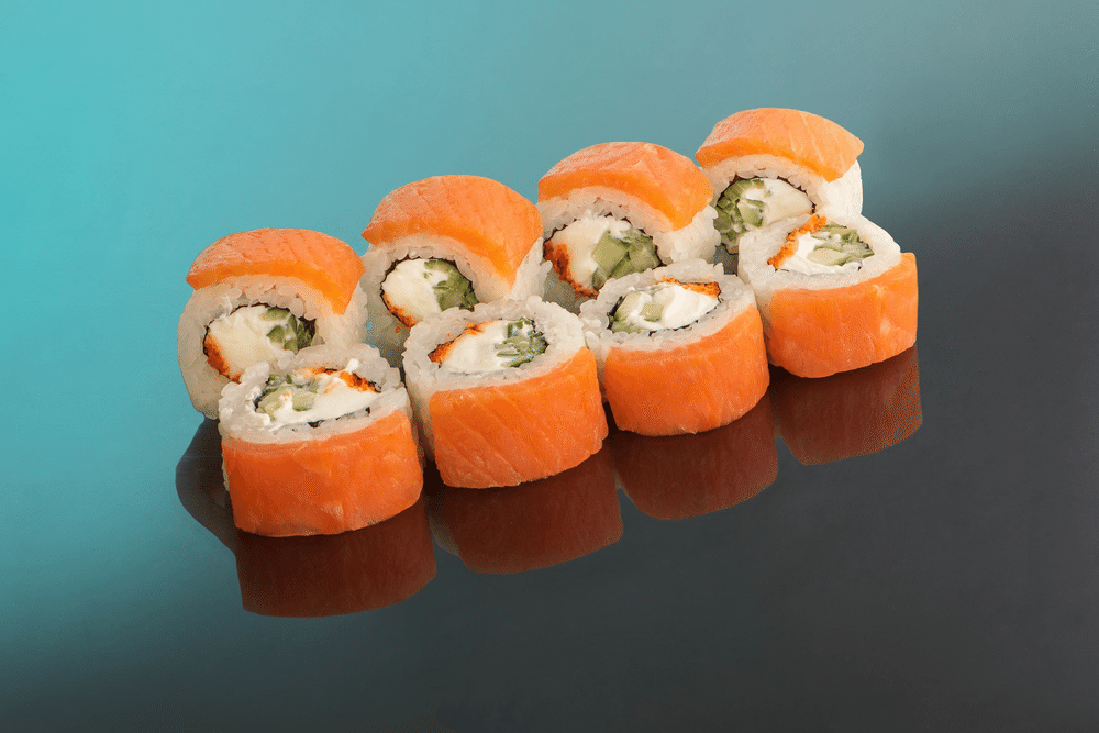 Облегченный вариант Филадельфии с огурцом. Соевый соус приобретается отдельно.