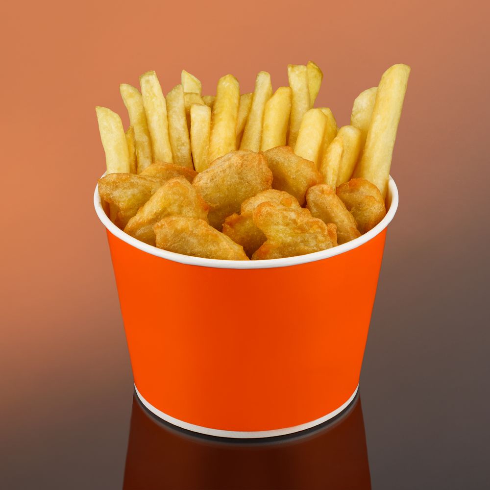 Аппетитные наггетсы из курицы и хрустящий картофель фри. Идеальный выбор для любителей фастфуда!