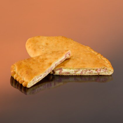 Тесто, фирменный белый соус, жареная курица, шампиньоны , нежнейший сыр моцарелла, лук.
