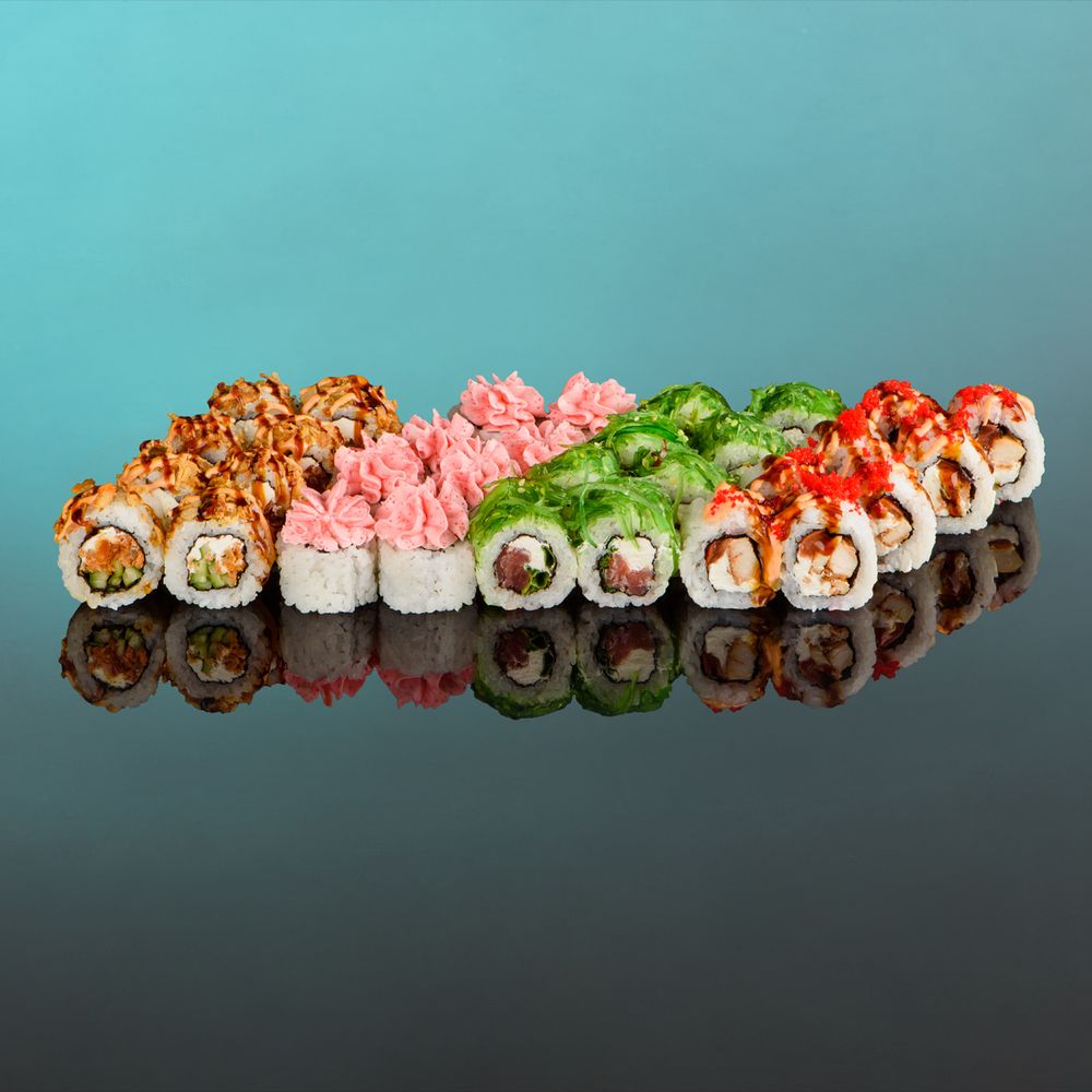 Ролл "Чикен Краш" , Ролл "Лава с Крабом" ,Ролл "Елка" , Ролл "Аризона Фурай"