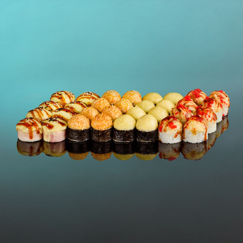 Ролл "Якимаки с Угрем" , Ролл "Якимаки с беконом", Ролл "Тори с Ананасом" , Ролл "Снежная Вершина"